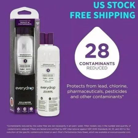 Ensure your refrigerator delivers fresh-tasting water with certified EveryDrop filters (models EDR1RXD1, EDR2RXD1, EDR3RXD1). Compatible with leading Whirlpool, Maytag, Amana, and KitchenAid models, EveryDrop filters remove 99% of contaminants like lead and pesticides. Quick to install and built for long-lasting performance.